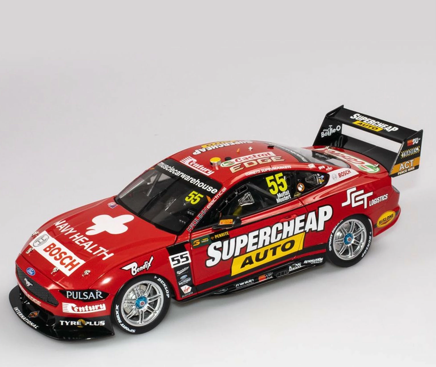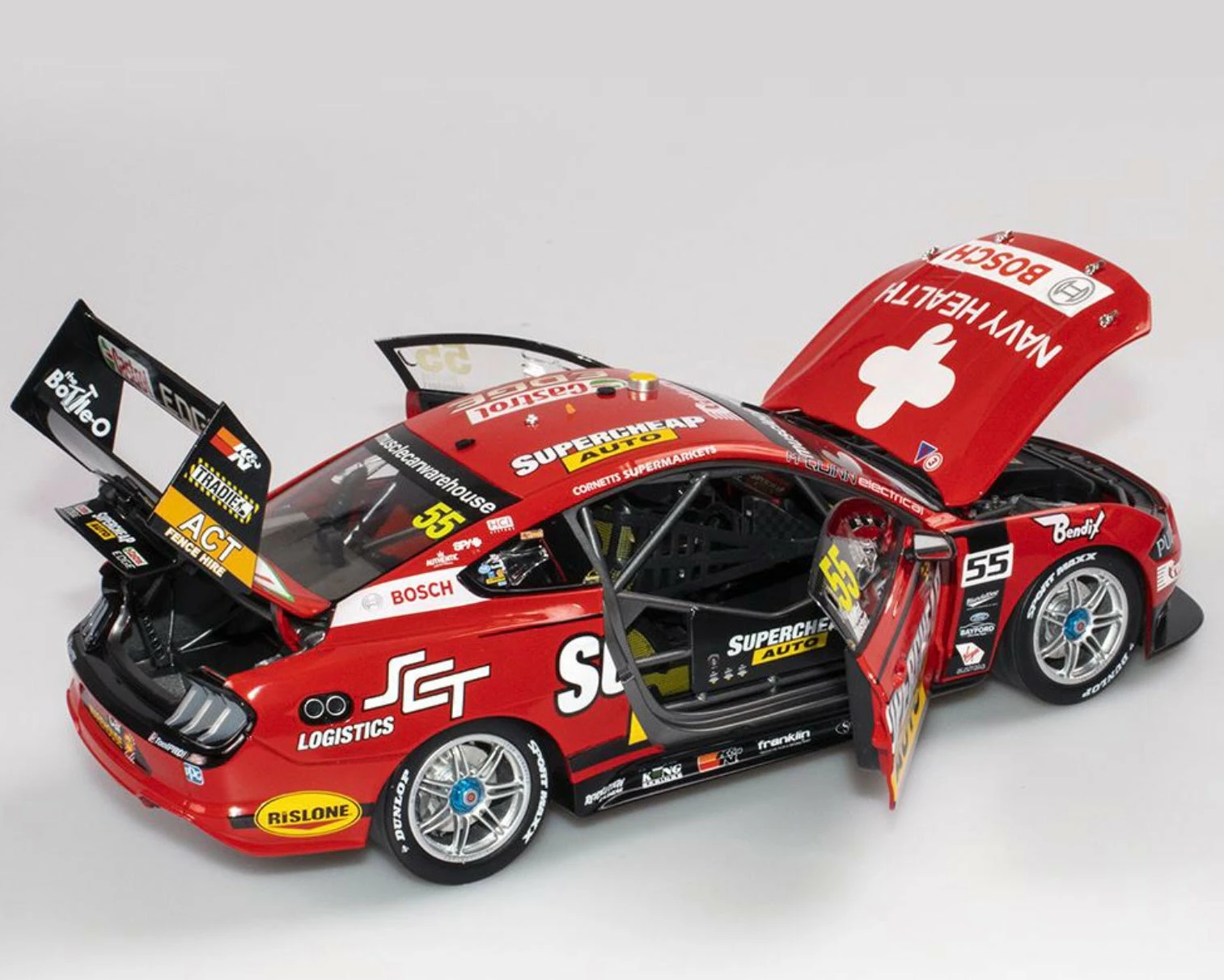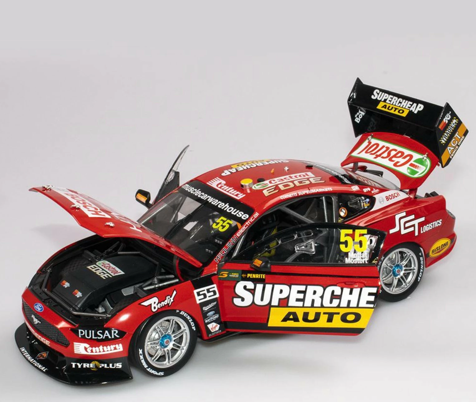 Product Description: 1:18 Scale Supercheap Auto Racing Ford Mustang GT – 2019 Penrite Oil Sandown 500 Retro Round – #55 Drivers: Chaz Mostert / James Moffat