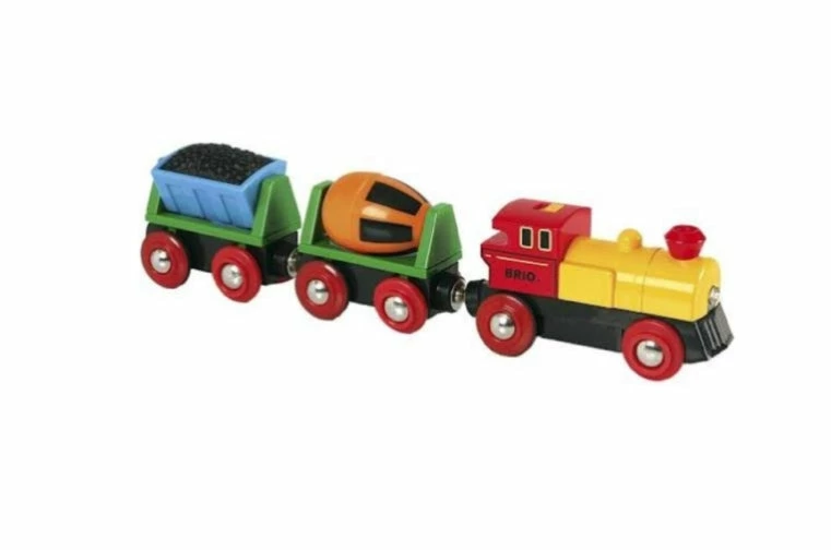 If you’re looking for a new set of wheels for your BRIO train track, you’re in the right place. This battery operated action train set is extra fun with a moving coal wagon and a rotating cement mixer as well as headlights that light up on the engine.