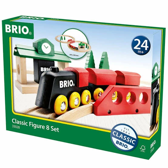 The classic figure 8 set is the perfect starter wooden train set to introduce the children into the wonderful world of trains. This set includes a classic train engine with 2 carriages, track pieces, station, bridge and trees. This track is easy for young children to navigate and allows them to familiarise themselves with train sets and trains, as well as how they operate. Each of the train carriages join together with magnets which makes it easy for the children to drive the train around the tracks while keeping the train together.