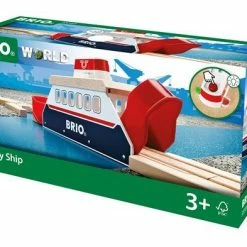 Ship Ahoy! Trains don’t run on water, but ferries do. So transport the train on to dry land with the BRIO Ferry. The ship features light and sound that is activated with a simple push of a button. With the two included docking tracks, the ferry door is opened upon arrival