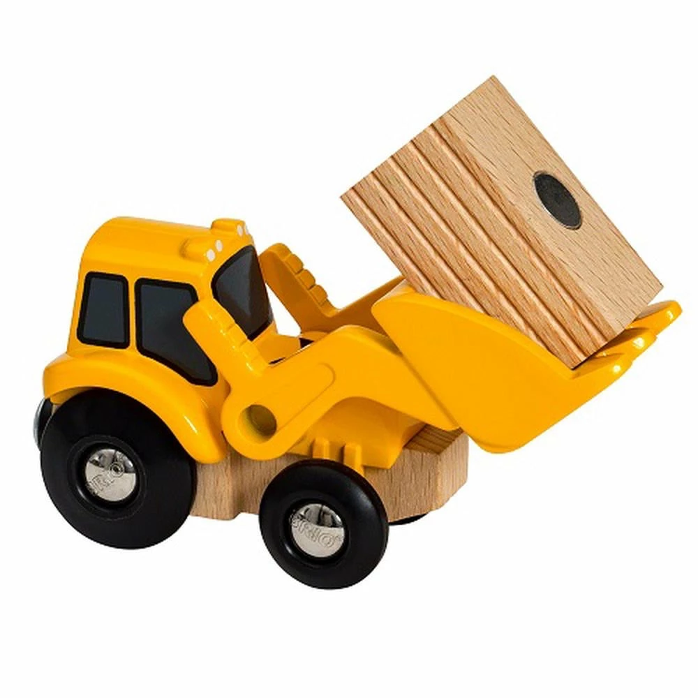 This Loader construction vehicle toy will lift the heaviest wooden loads in your BRIO World railway system. Lift & Load with ease: The loader is built for the toughest jobs. It’s striking yellow colour and construction graphics are complemented by a simple lift & load handgrip lever – fun to operate as you pick up and carry the wooden load. Once you are loaded up, take your load to where it needs to go and offload the cargo. The wooden load has a metallic pin making it easy for a BRIO World crane with magnetic function or other lift and load toys to pick up the cargo. Learning in action: The real-life based cargo play helps with children’s development by combining logical thinking with fine motor skills. Children can improve their hand-eye coordination as they act out each new cargo adventure.